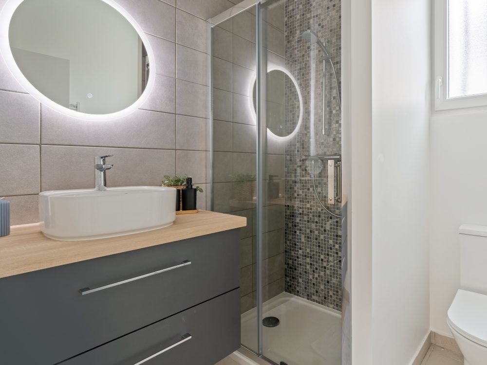 - Salle d’eau, avec WC, entièrement aménagée avec meuble vasque.