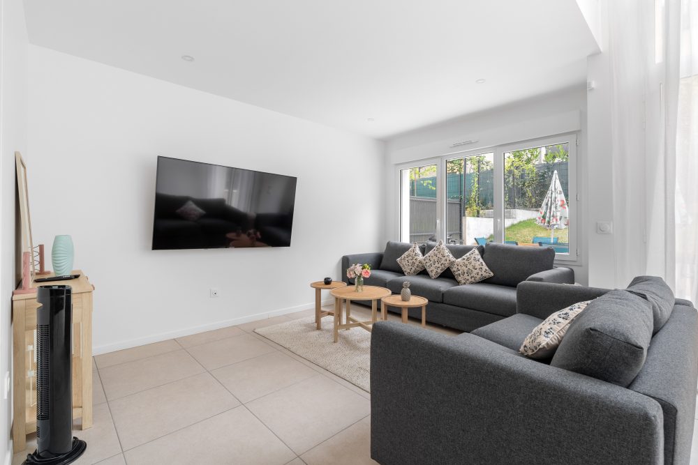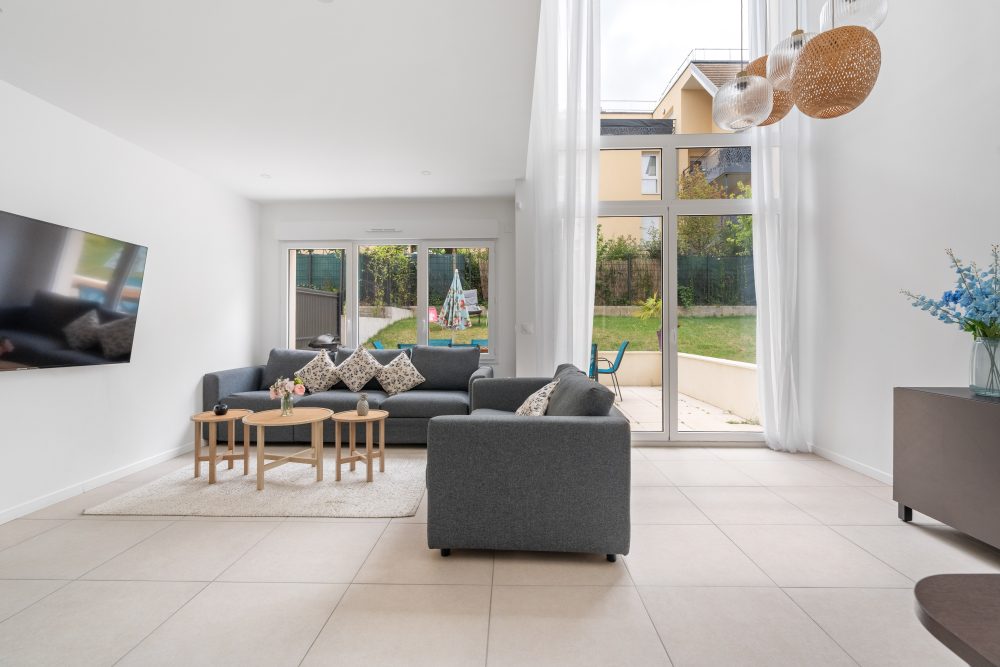 - Séjour cathédrale lumineux traversant de 51 m² donnant sur la terrasse et jardin.