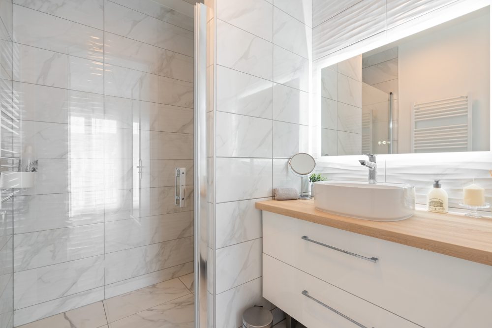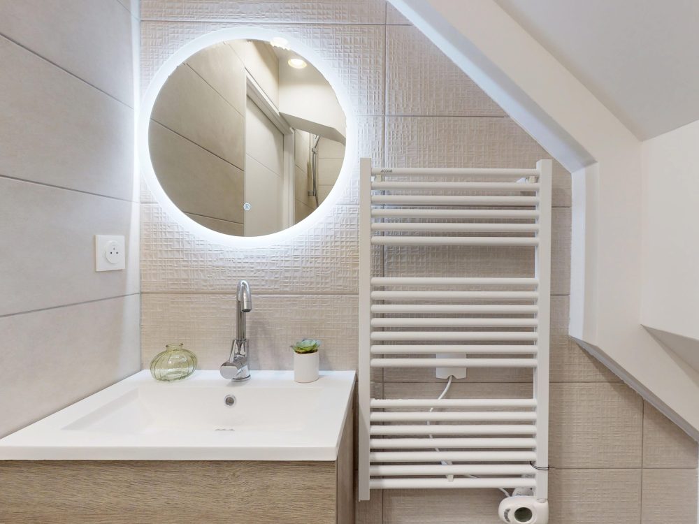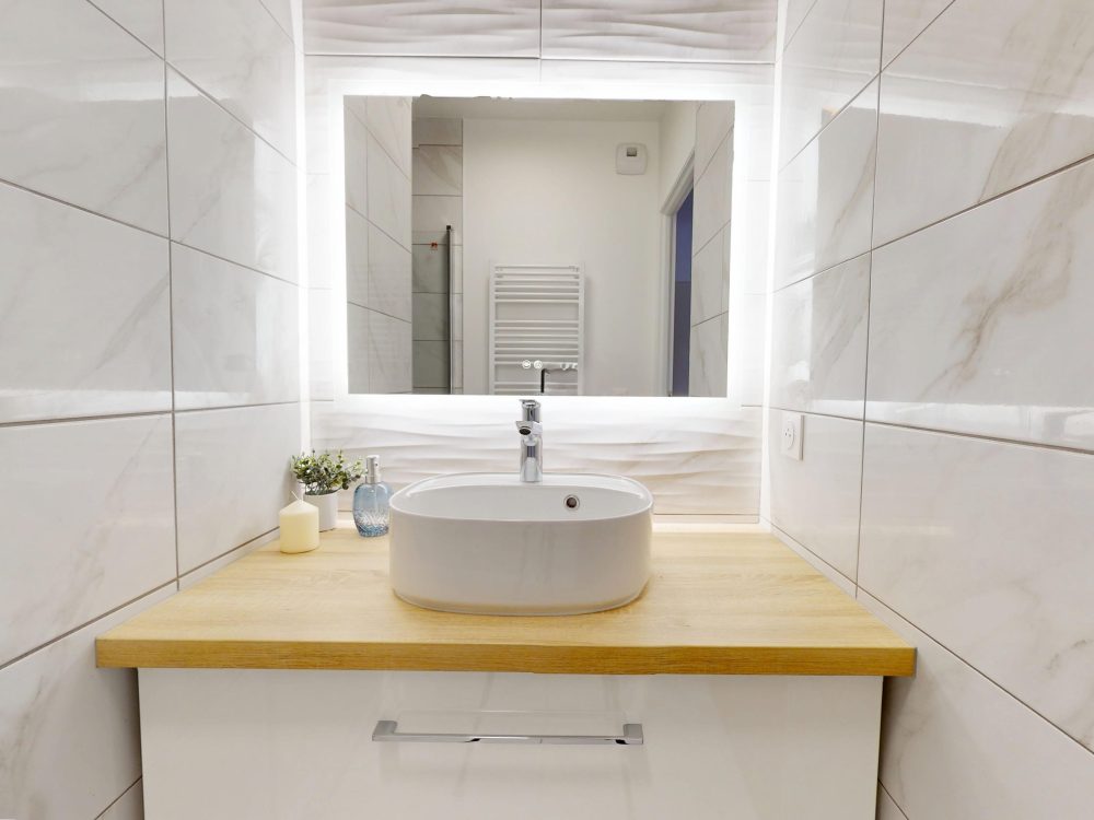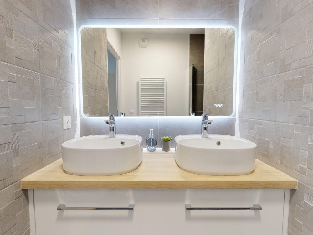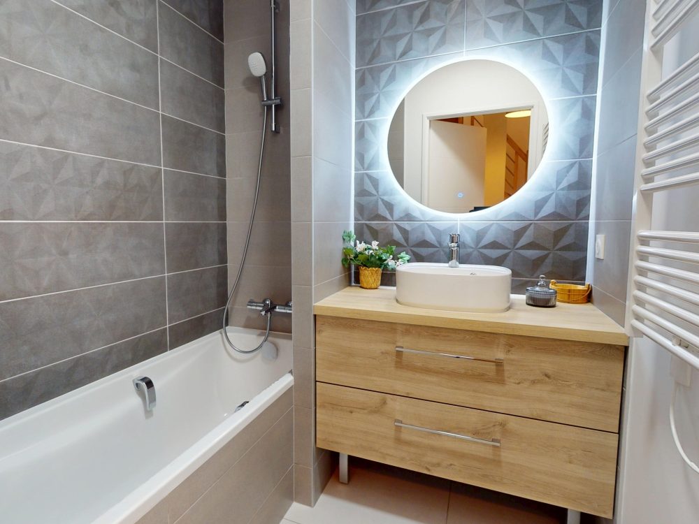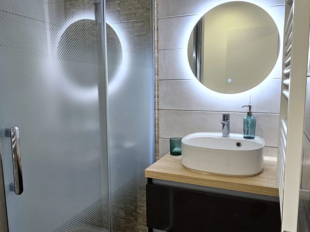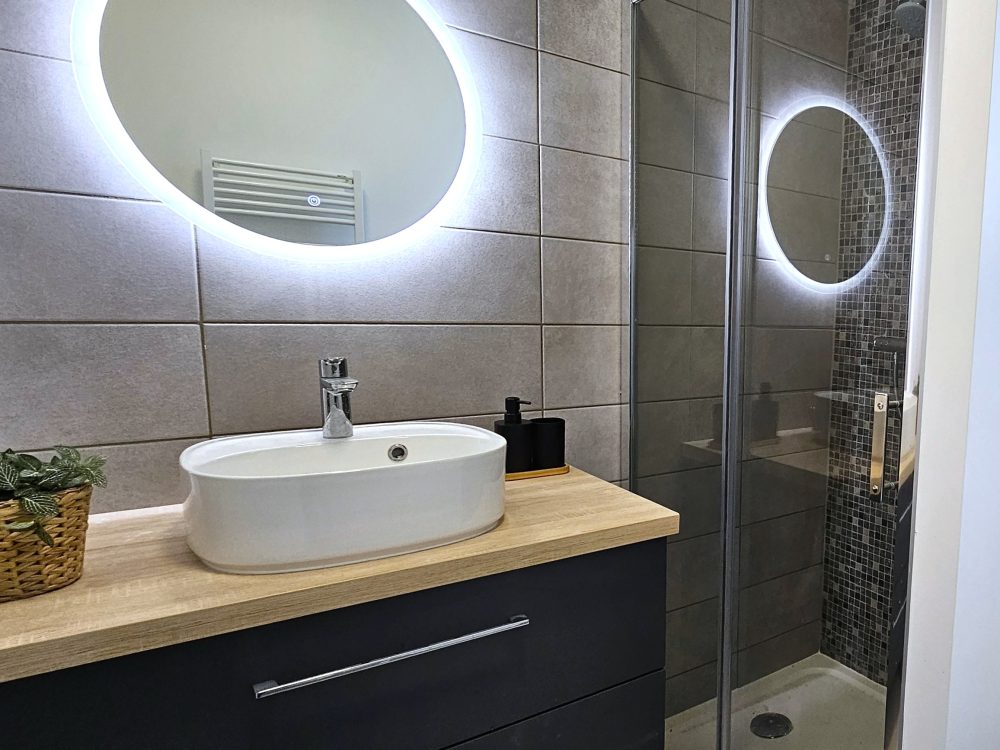 - Salle de bain entièrement aménagée avec meuble vasque.